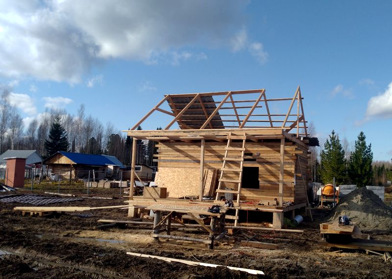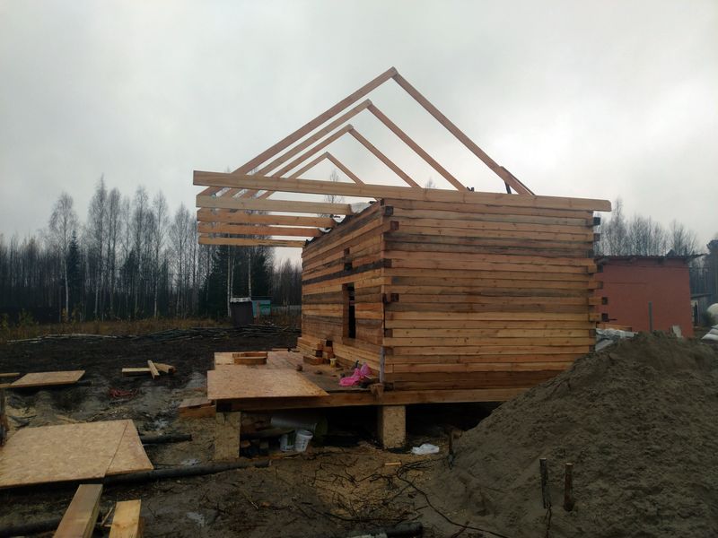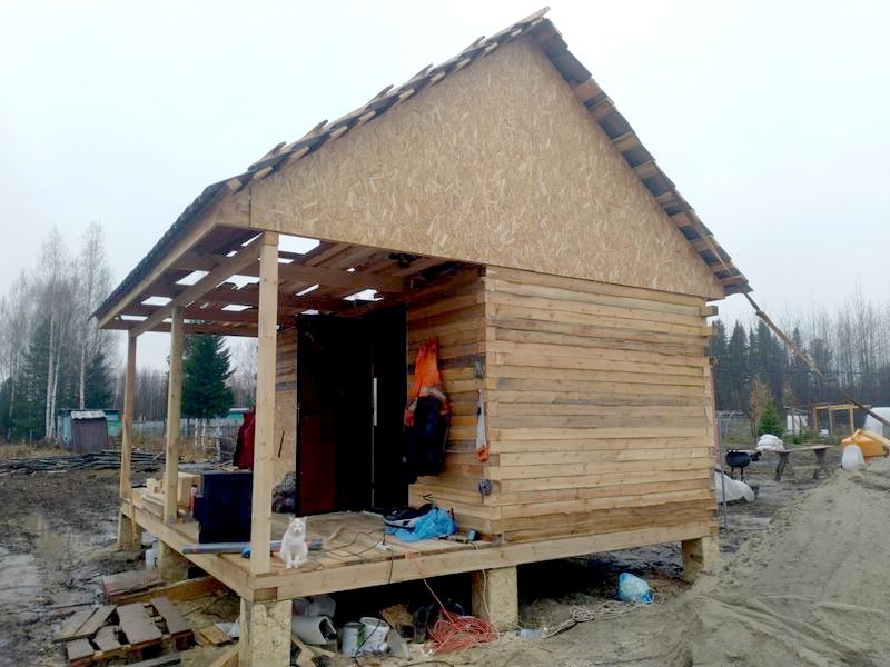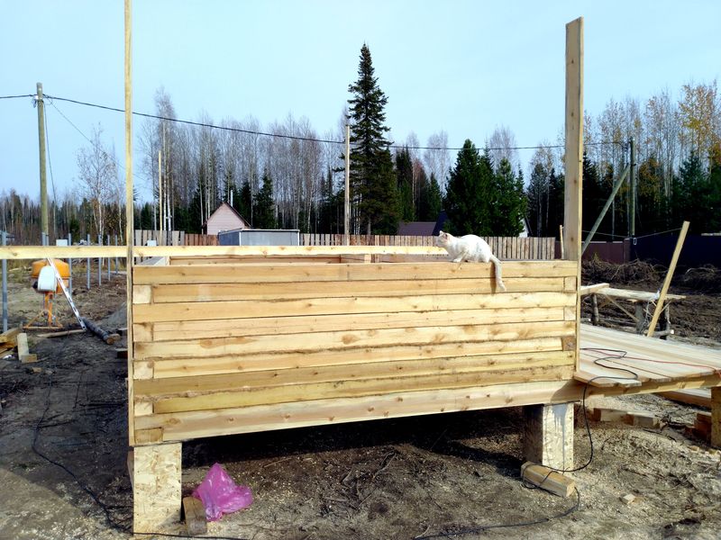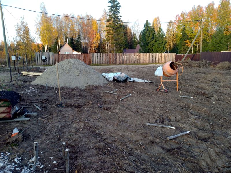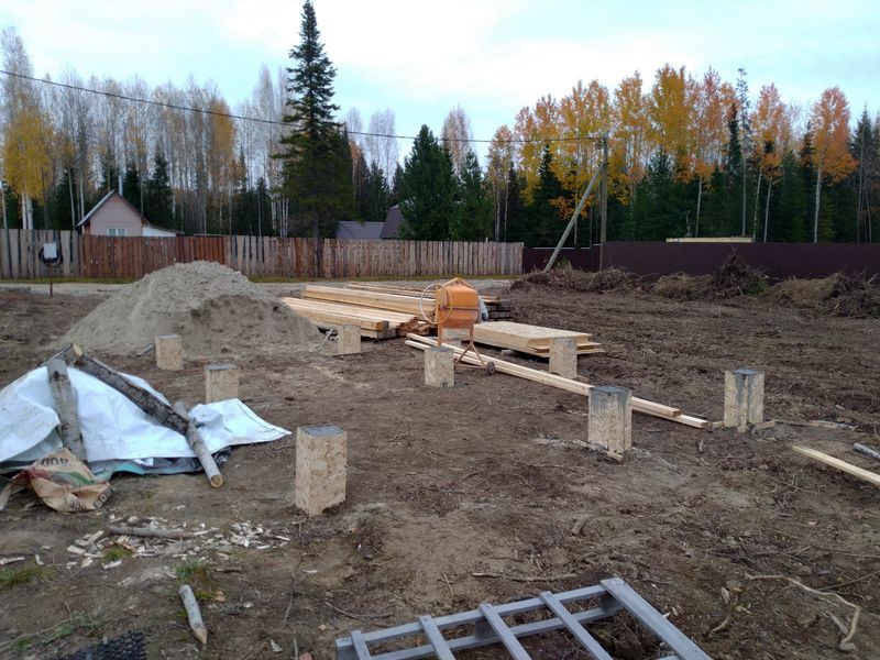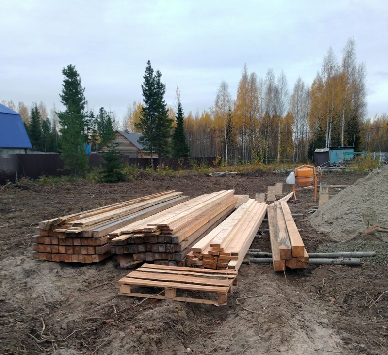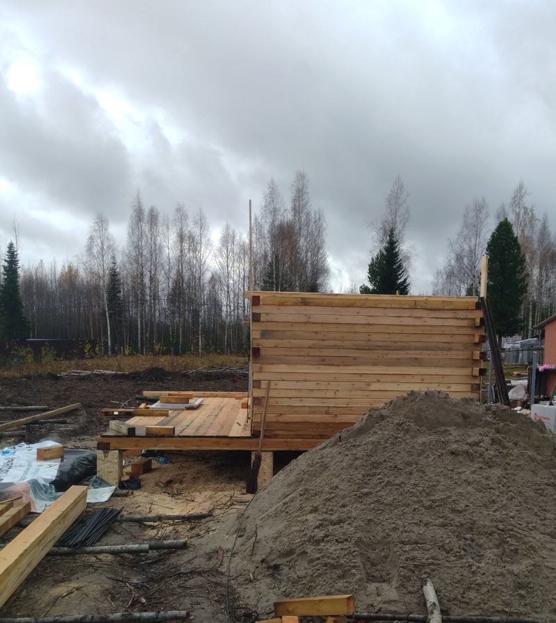 Постройка дачного дома 2023 год, из бруса 100х100 мм, размер общий с верандой 5 на 5,7 метров, теплая часть 3 на 5.7 метров, высота 2,3 м. Фундамент сваи углубленные на 80 см, залитые бетоном М400, армированы арматурой 14 мм. Пол фанера 20 мм, с утеплением пенопласт 100 мм., потолок утеплён так же. Установлена печка буржуйка «Теплодар». Смонтировано электричество. Построен туалет. В 2024 сделал забор из профлиста, ворота распашные и калитка. Начальник стройки Семён Семёныч, самый добрый и красивый!!!