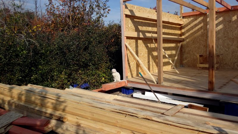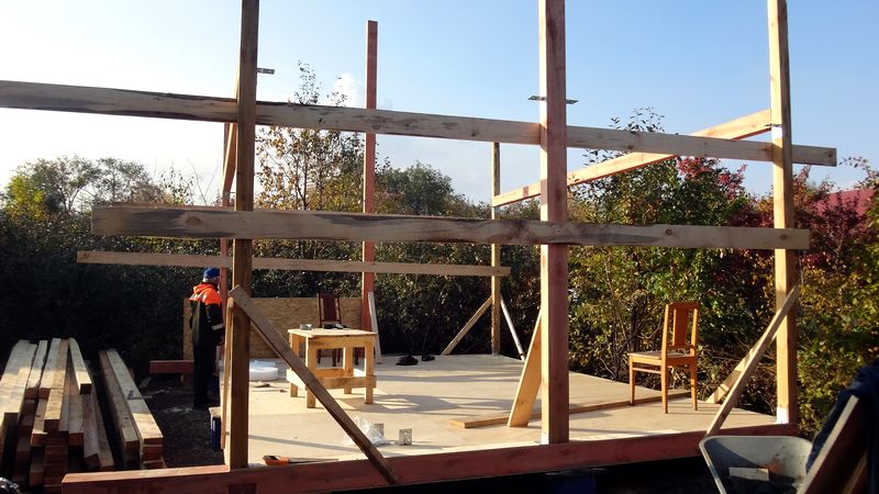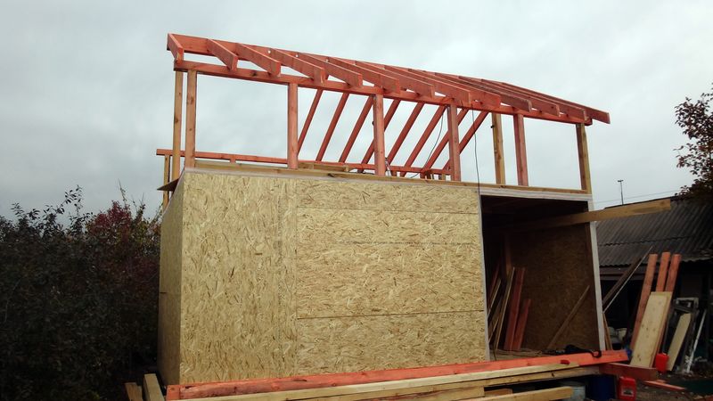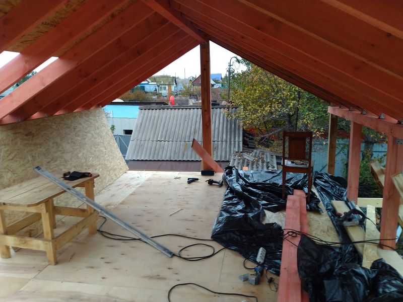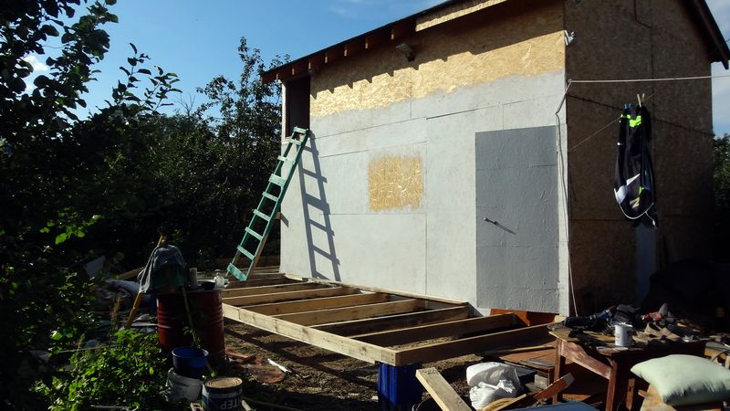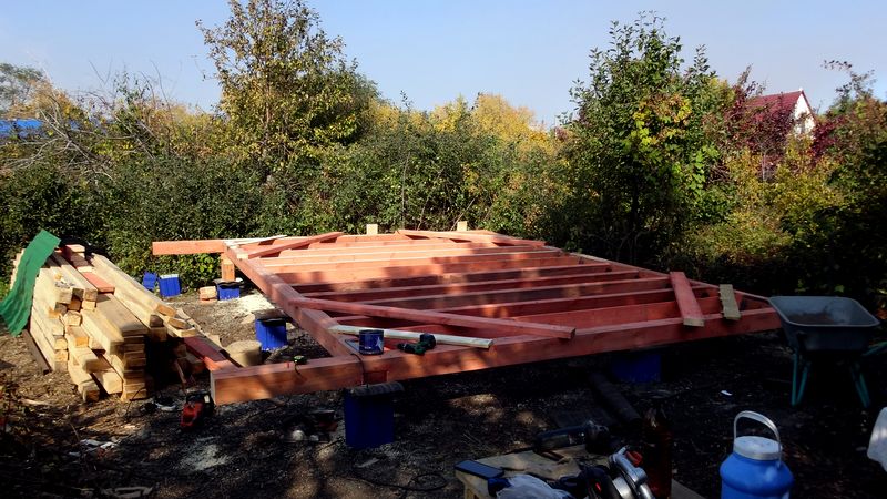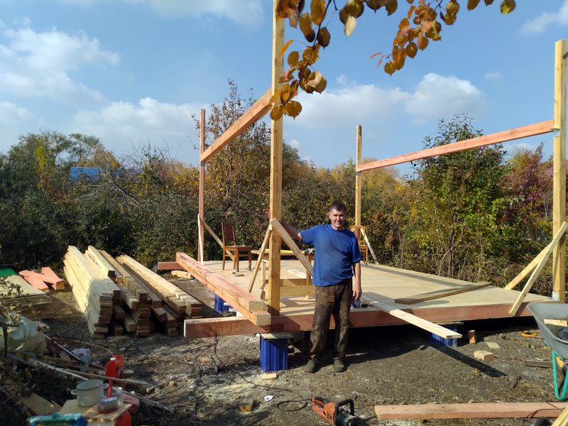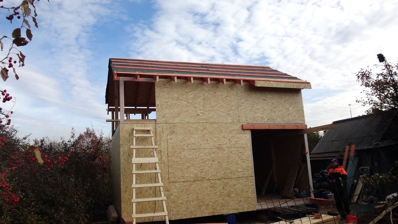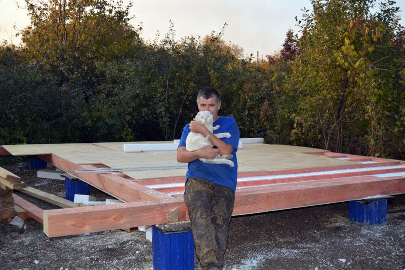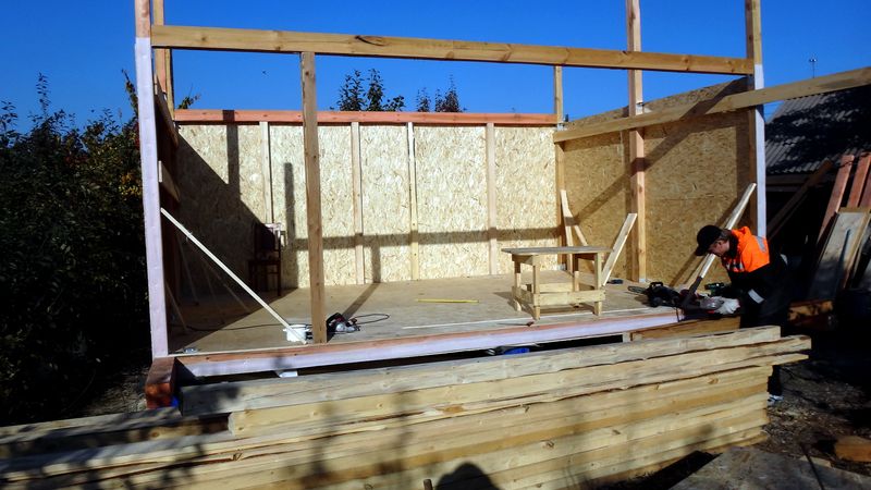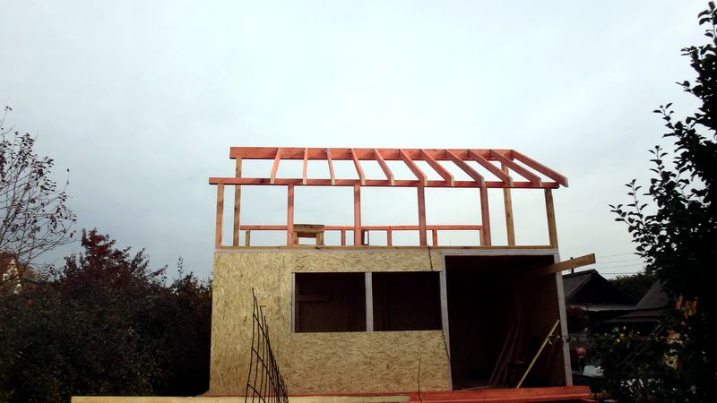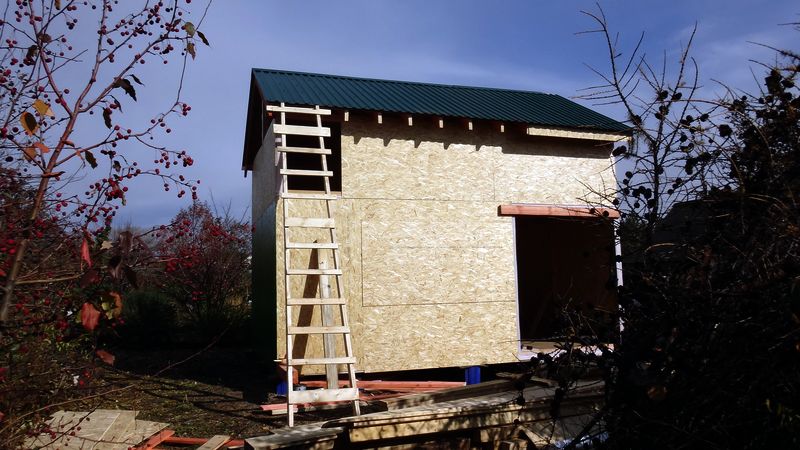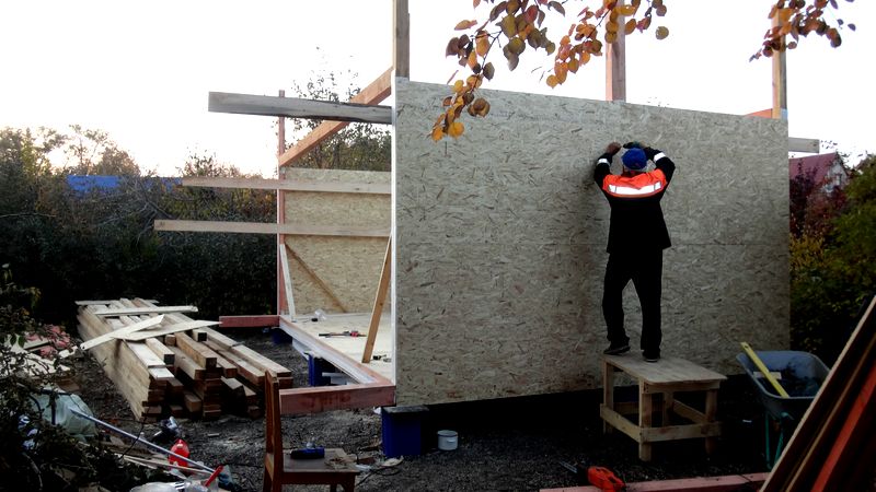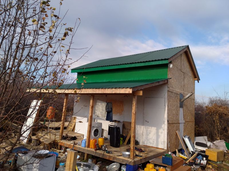 Мой домик 5.5 на 3.7 метра, 2 этажа, построен по каркасной технологии. Утеплен обычным белым пенопластом 100 мм, всё запенено вокруг монтажной пеной. Толщина стен 120 мм. из ОСБ Плит 9 мм. Фундамент просто углубленные на 80 см залитые бетоном столбики, с арматурой. Работа сделана 2 строителями и под чутким руководством начальника Семёна в течение 2 недель.